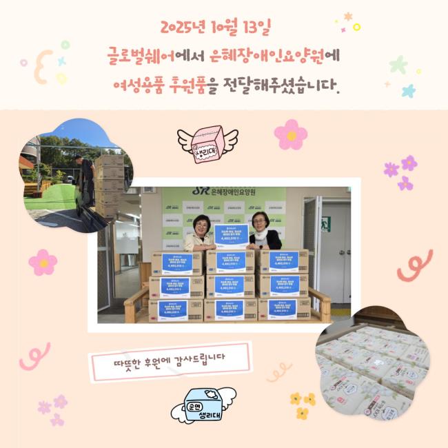 ±Û·Î¹ú½¦¾î¿¡¼­ ÀºÇýÀå¾ÖÀοä¾ç¿øÀ» À§ÇØ ¿©¼º¿ëǰÀ» ÈÄ¿øÇØÁּ̽À´Ï´Ù.